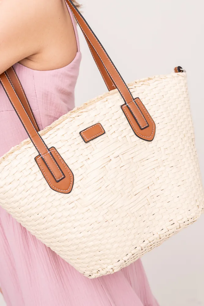 Damskie Jasnobeżowa Torebka pleciona FINDI