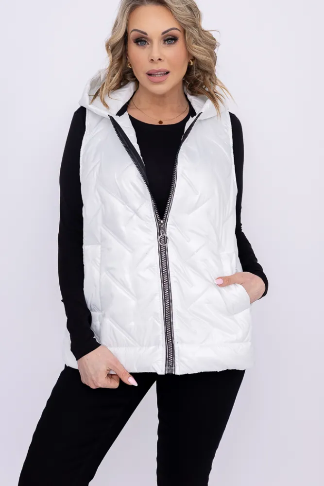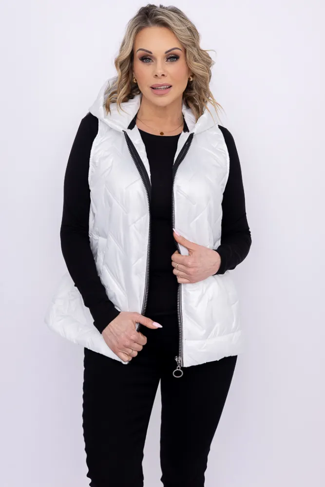 Damskie Polski Biała pikowana Kamizelka z kapturem SUMENTO