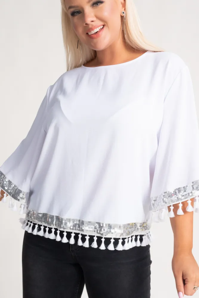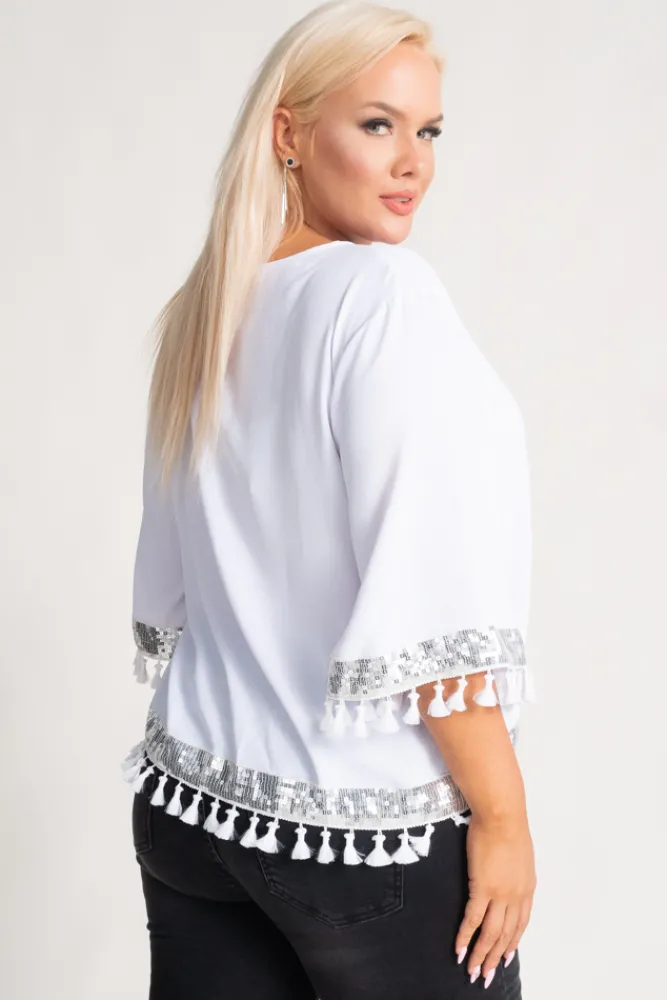 Damskie Polski Biało-srebrna Bluzka z frędzelkami GARMINA