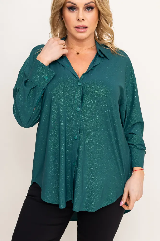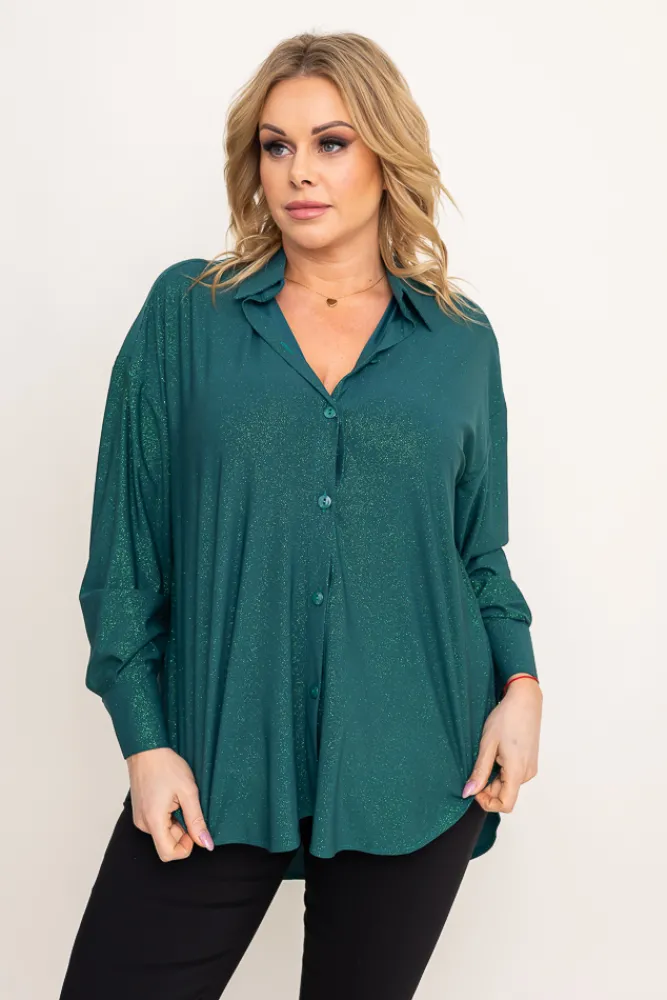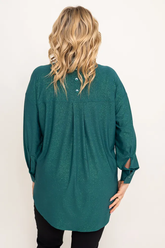 Damskie Polski Butelkowozielona Koszula brokatowa oversize DESINO