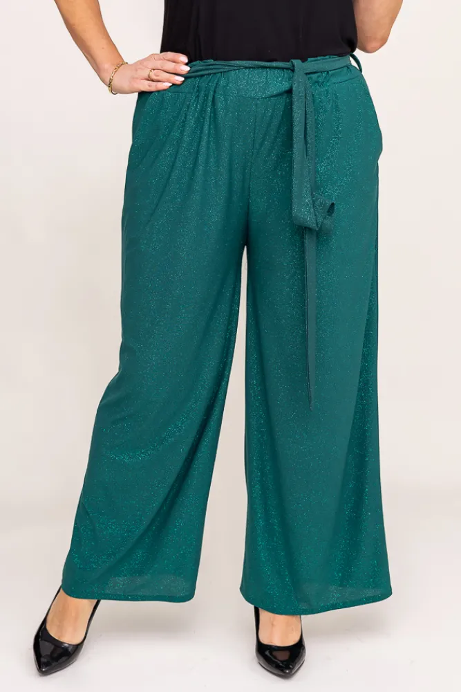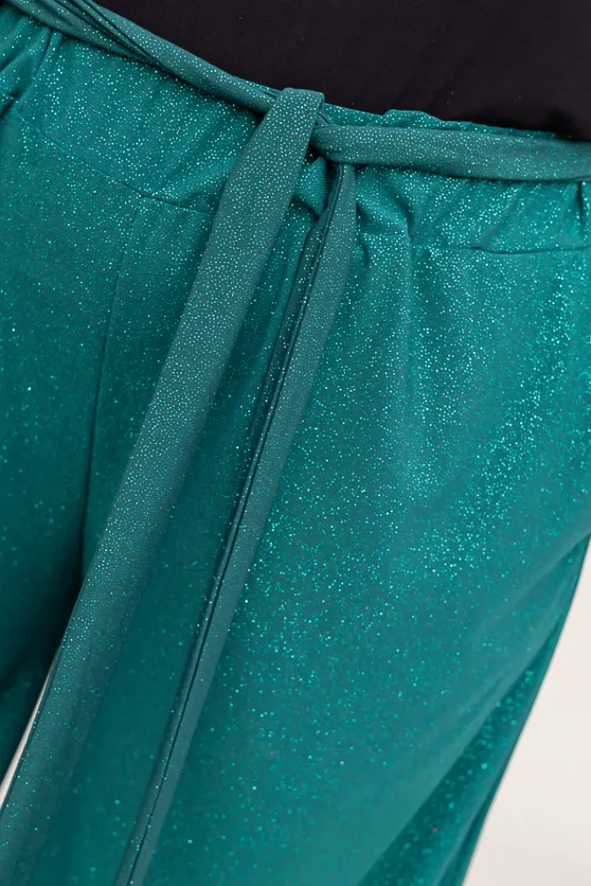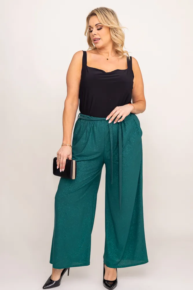 Damskie Polski Butelkowozielone Spodnie kuloty brokatowe WIGIO