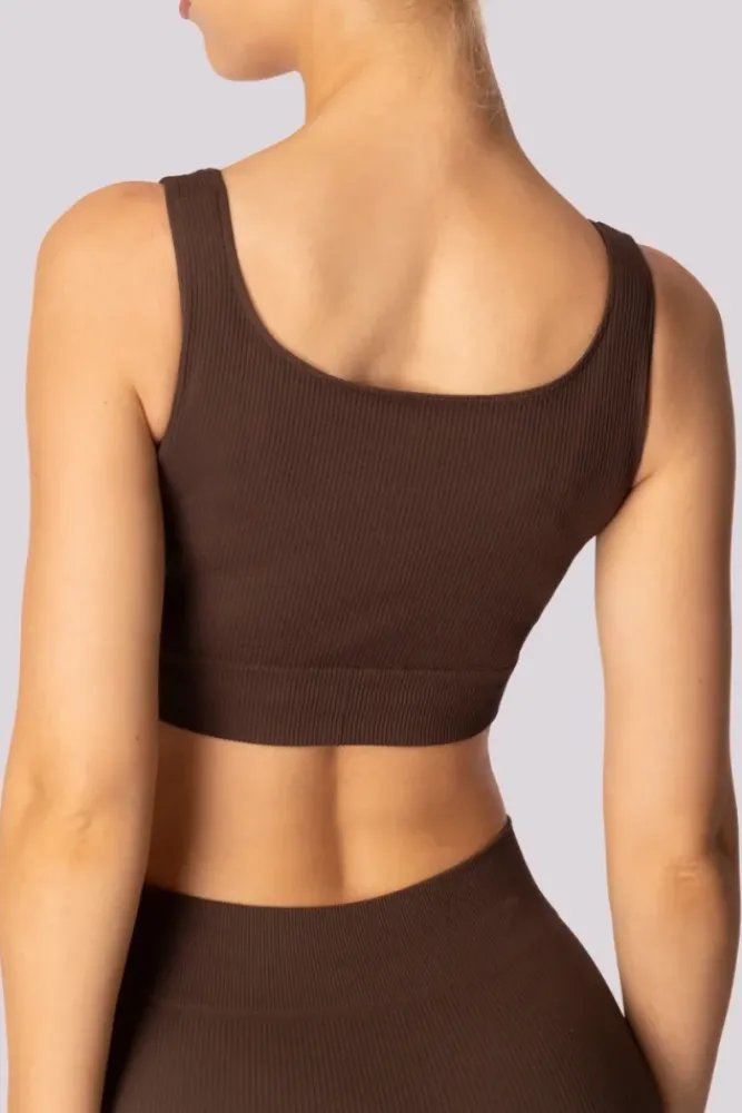 Damskie Polski Kawowy Top prążkowany RIBBED
