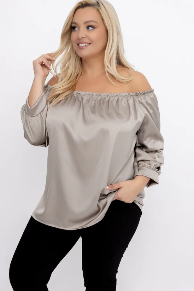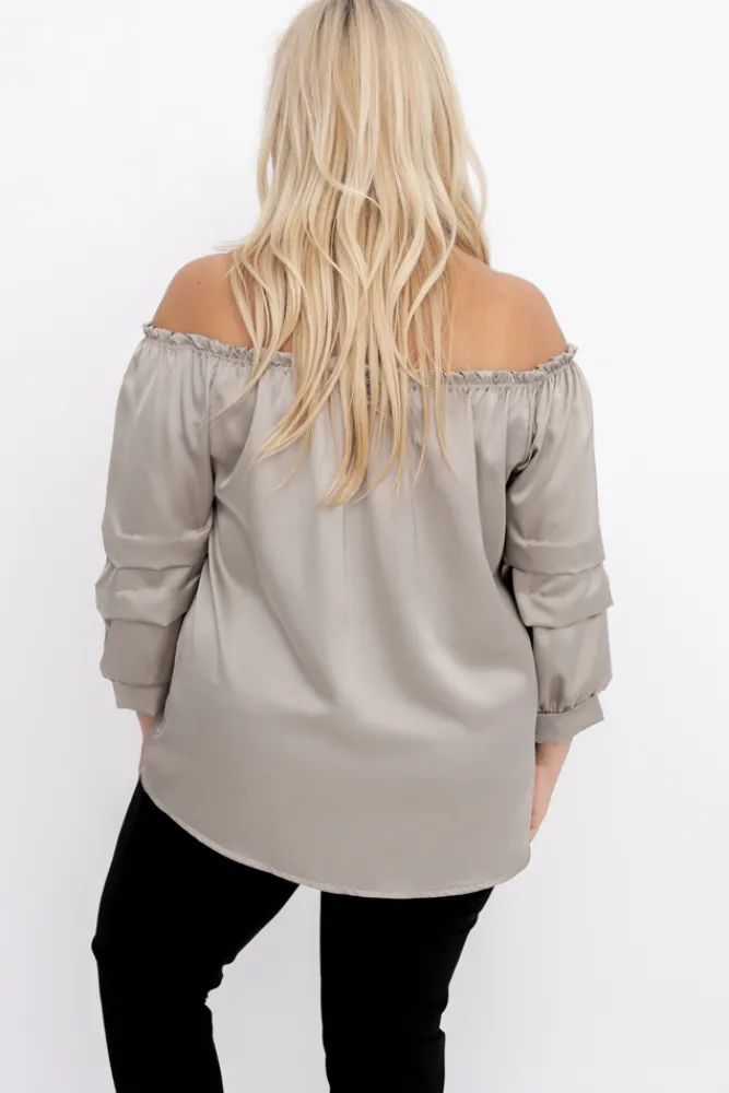 Damskie Włoski Beżowa Bluzka z marszczonymi rękawami HENDI