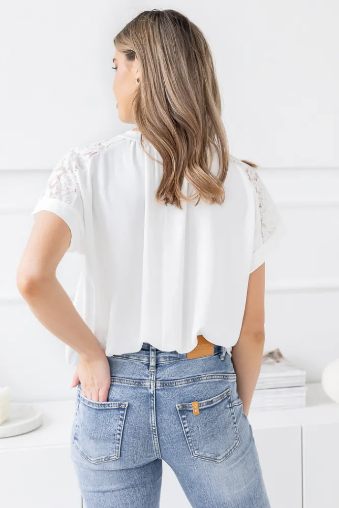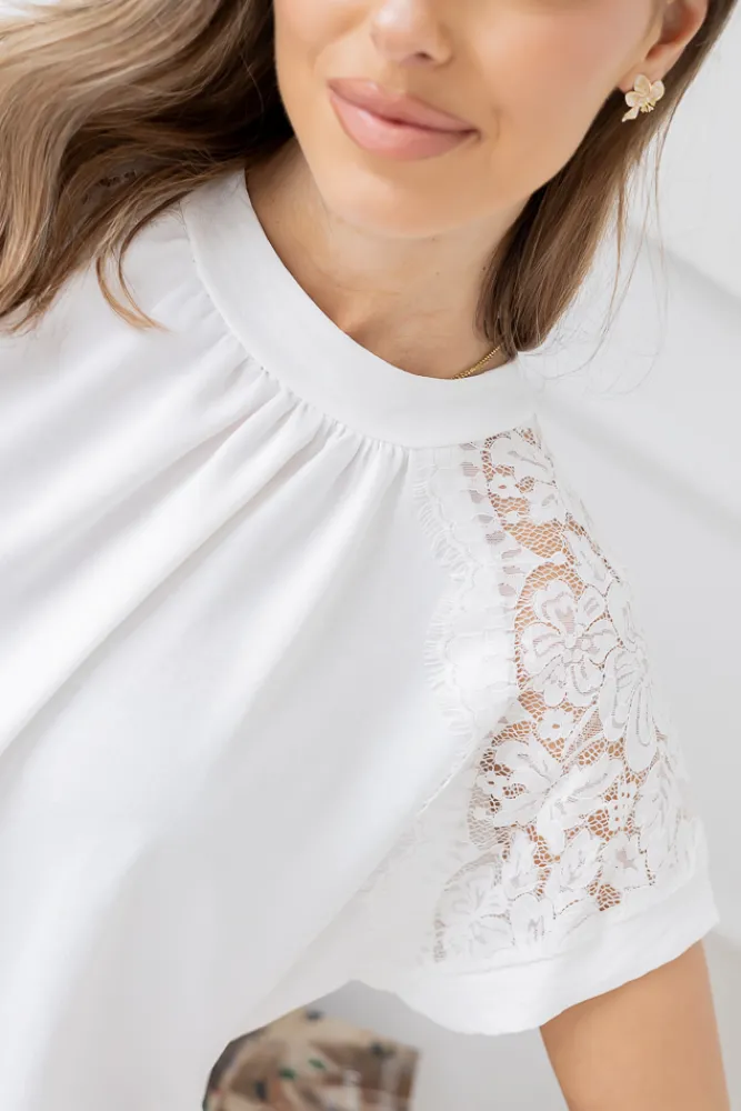 Damskie Włoski Biała Bluzka z koronkowymi rękawami BELOXI