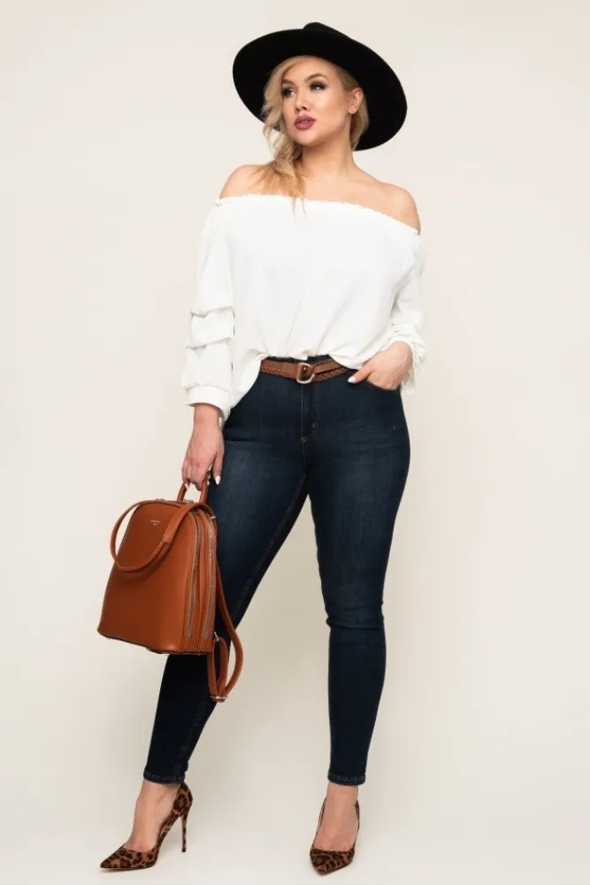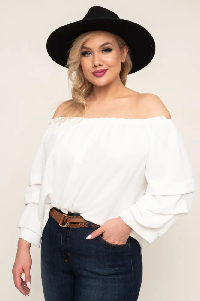 Damskie Włoski Biała Bluzka z marszczonymi rękawami NANSI