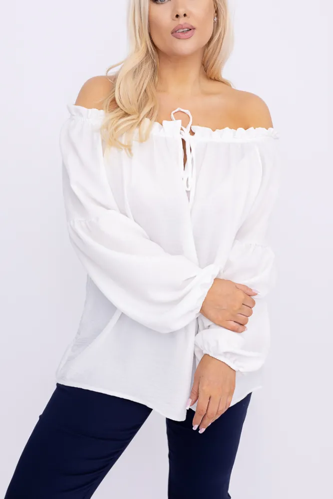 Damskie Włoski Biała Bluzka z wiązanym dekoltem MIRENO