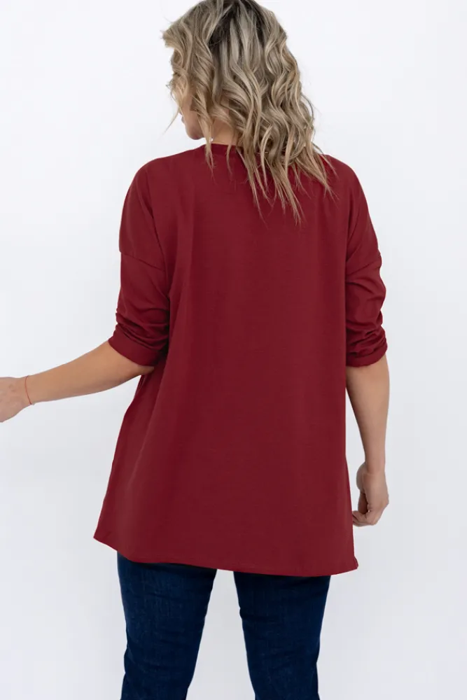 Damskie Włoski Bordowa Bluzka SALEN