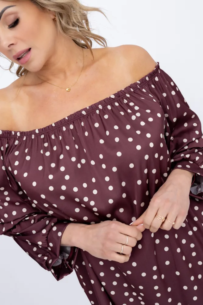 Damskie Włoski Bordowa Bluzka z marszczonymi rękawami HENDI Wzór 1