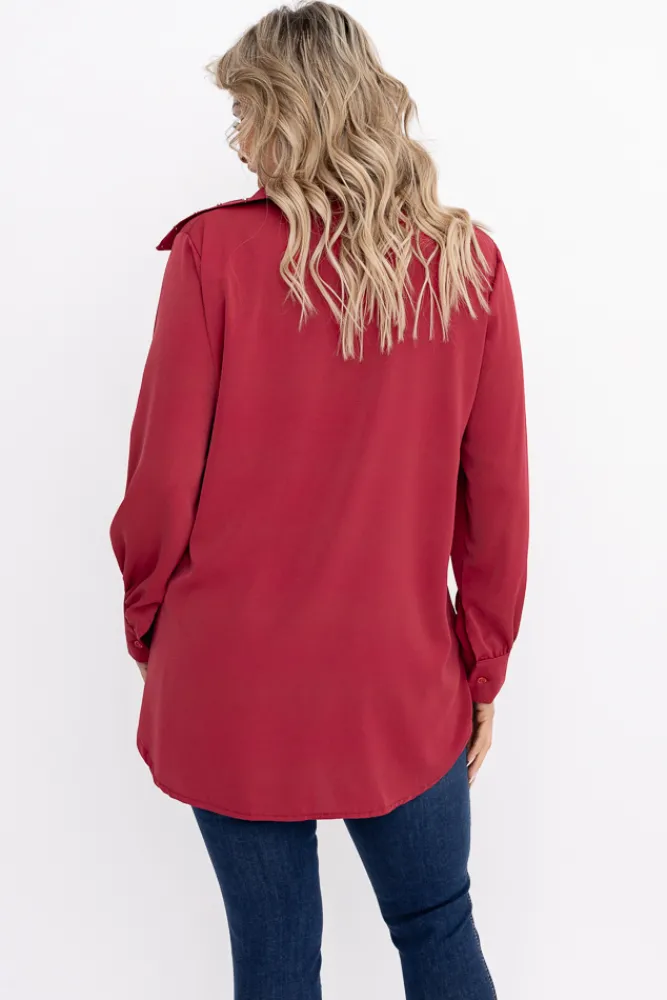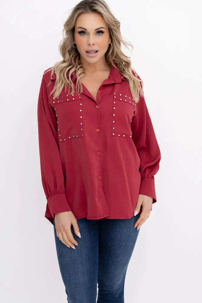 Damskie Włoski Bordowa Koszula PERMUZI