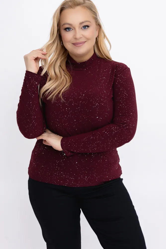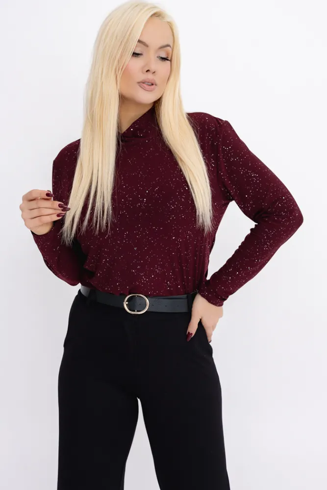 Damskie Włoski Burgundowa Bluzka błyszcząca z półgolfem LOKI