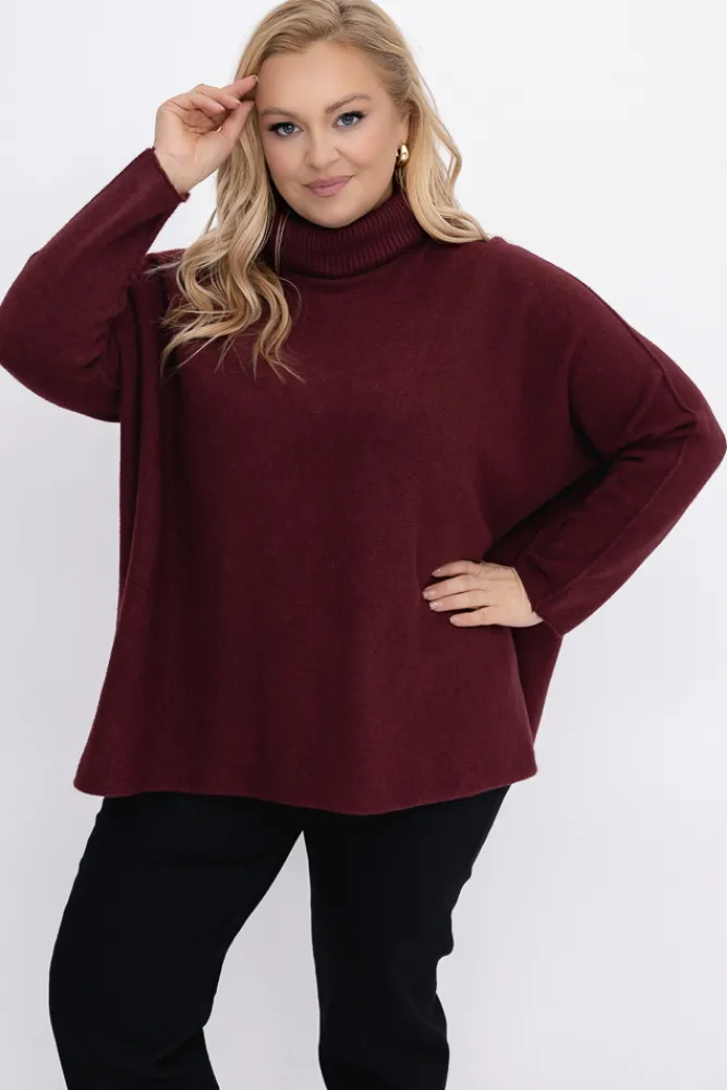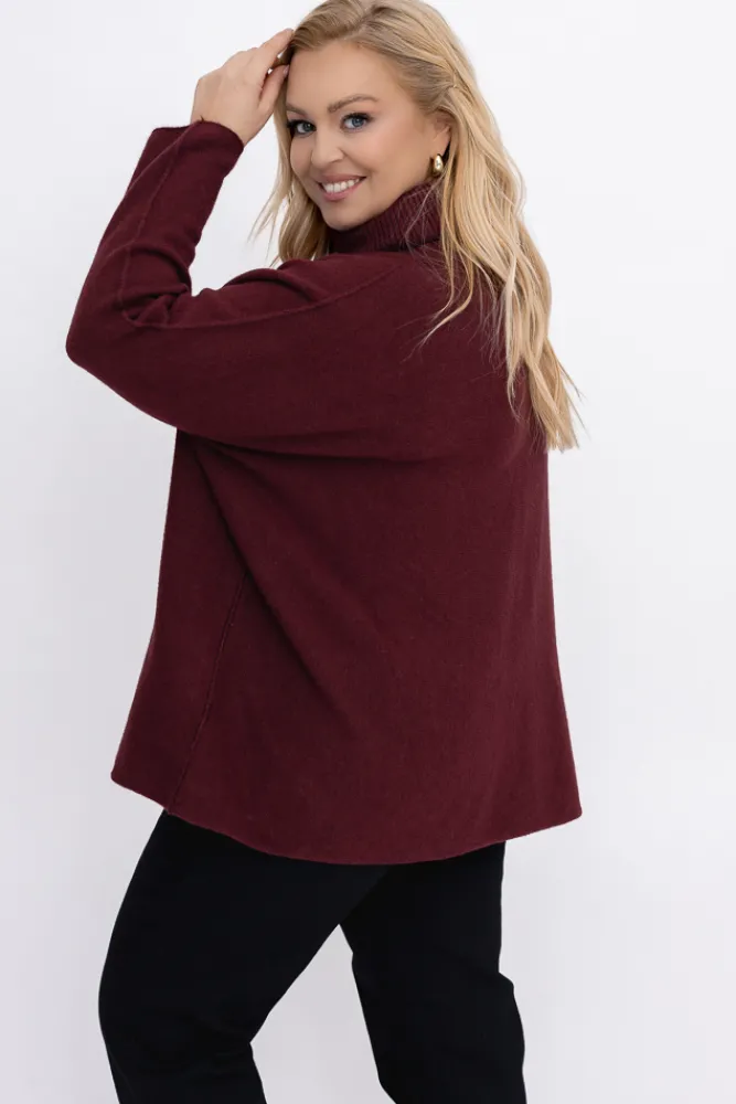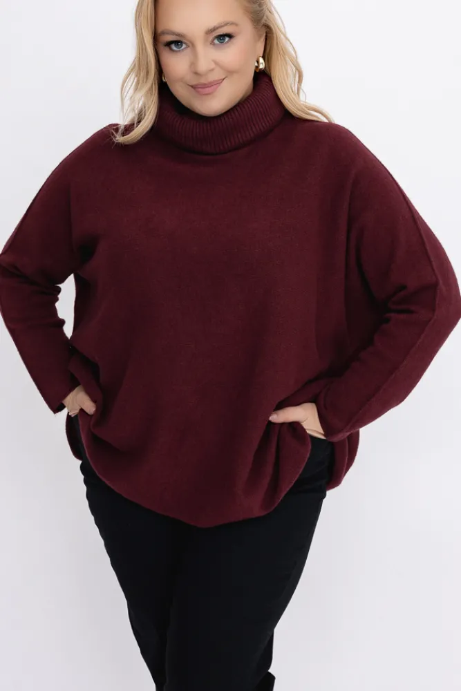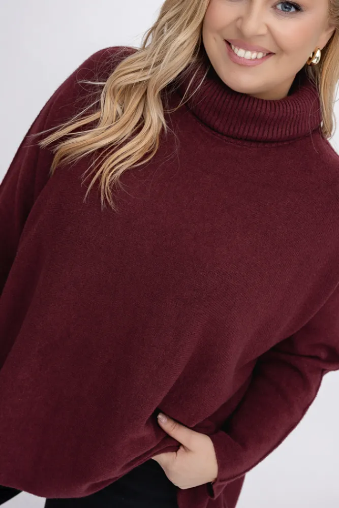 Damskie Włoski Burgundowy Sweter z golfem MONTIO