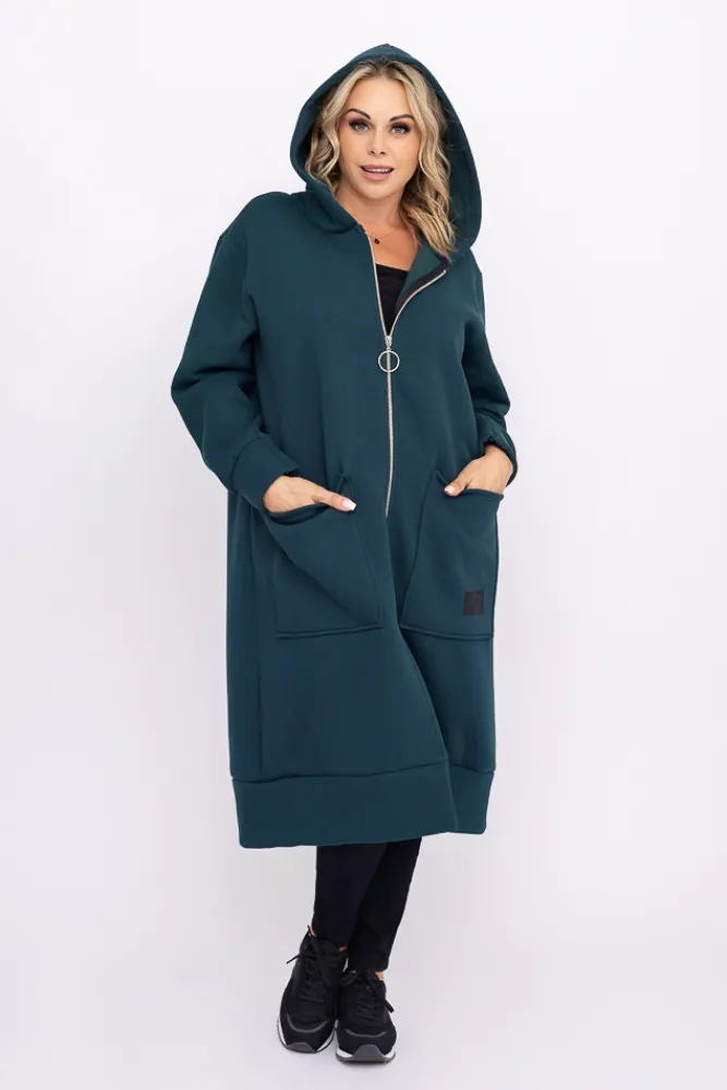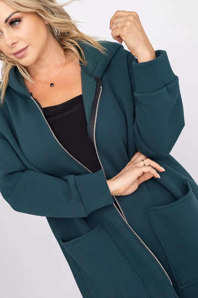 Damskie Włoski Butelkowozielona Bluza ocieplana VERMEN