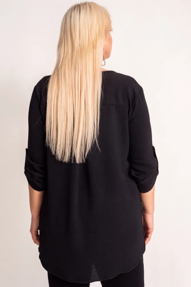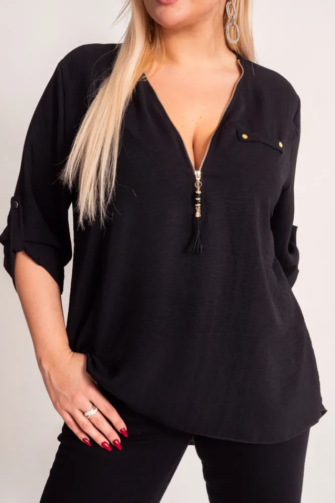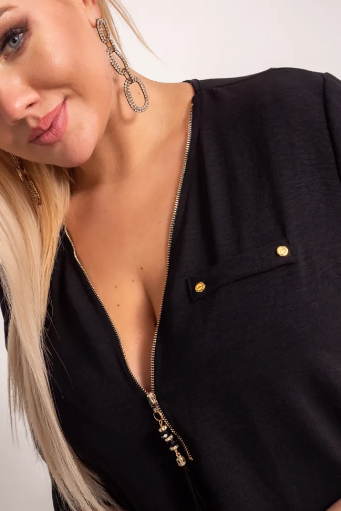 Damskie Włoski Czarna Bluzka z rozsuwanym dekoltem MERXIO