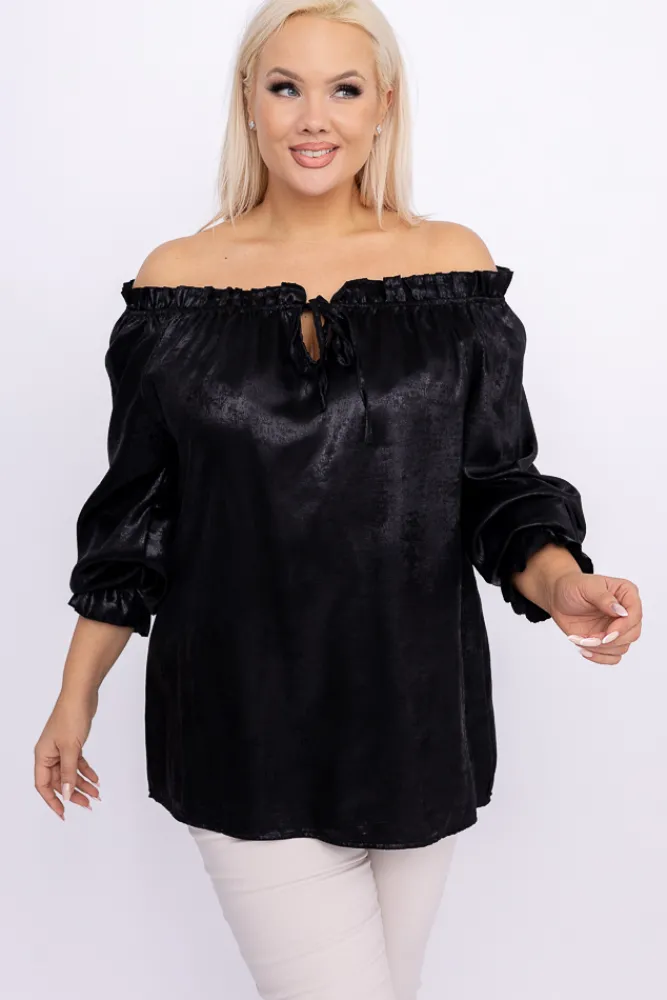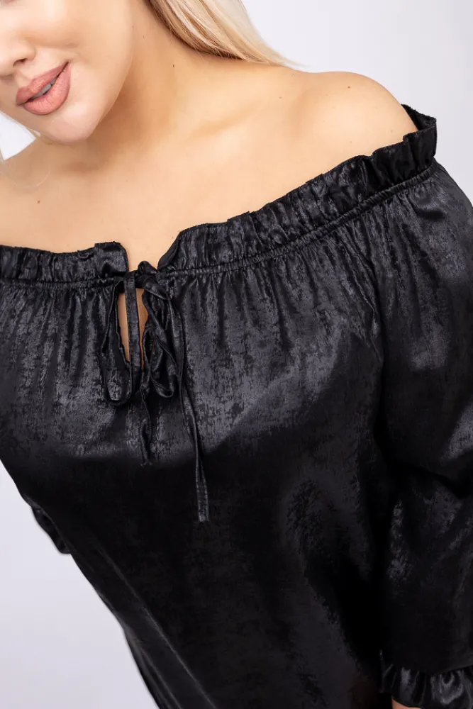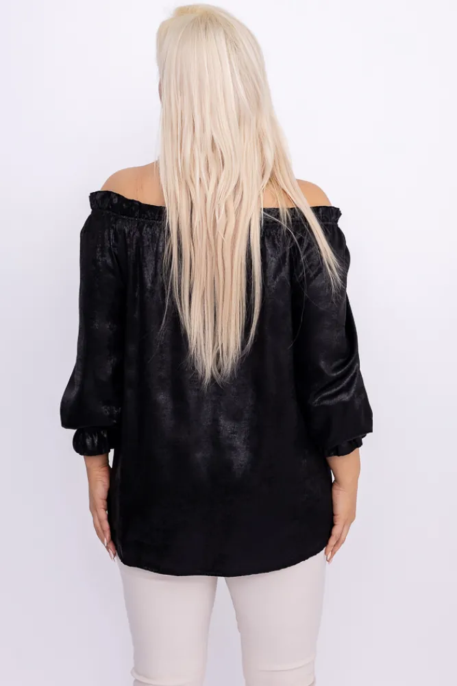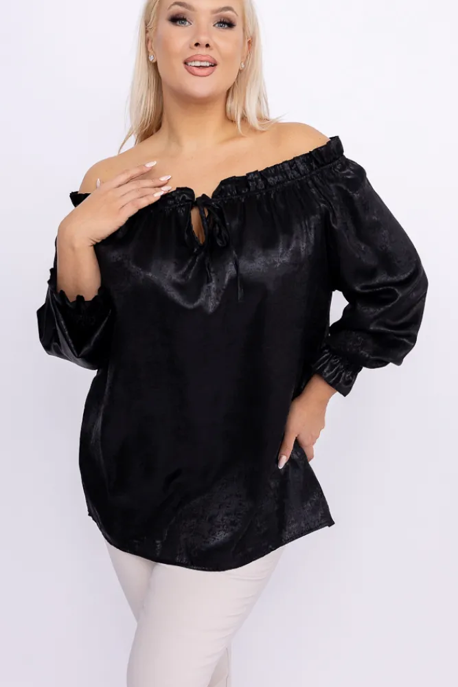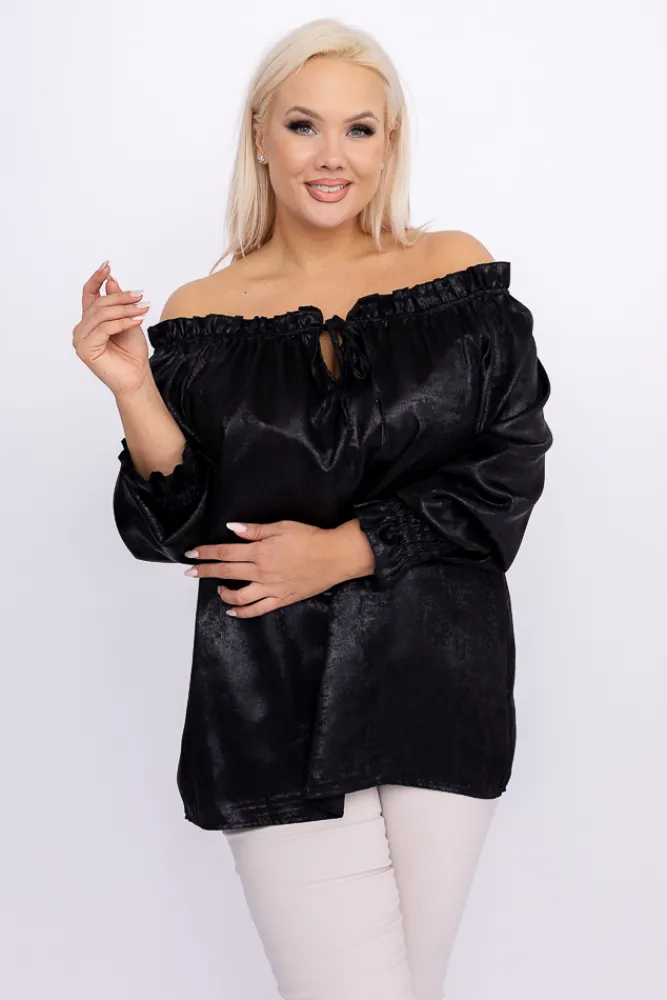 Damskie Włoski Czarna błyszcząca Bluzka ZOI
