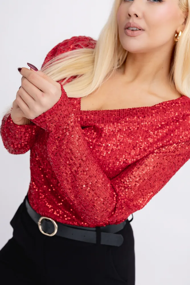 Damskie Włoski Czerwone Body cekinowe MUSSILO