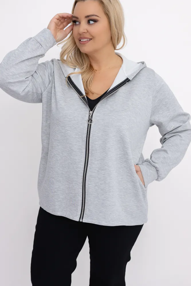 Damskie Włoski Jasnoszara Bluza z kapturem KORDIEN