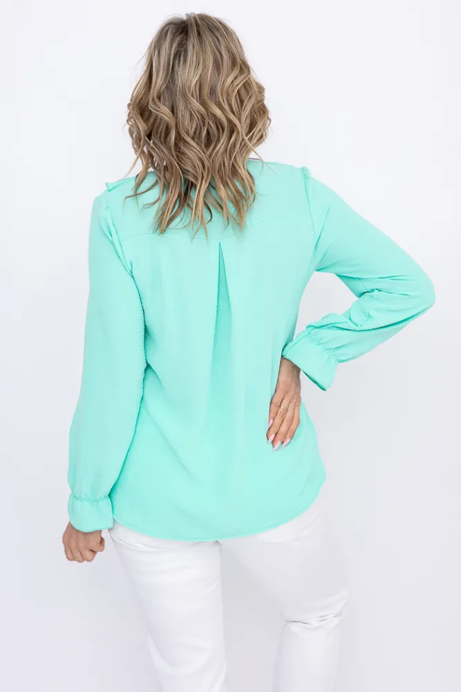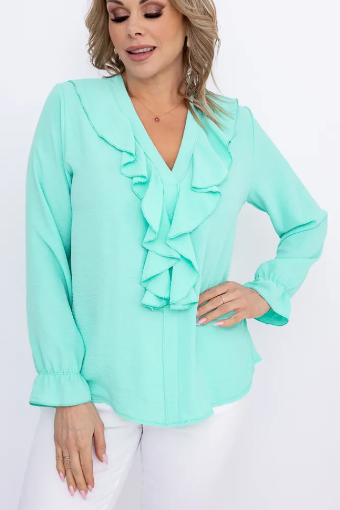 Damskie Włoski Miętowa Bluzka z żabotem GENESIS