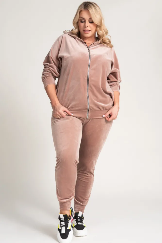 Damskie Włoski Pudrowo Komplet Dresowy welurowy KARMENIO