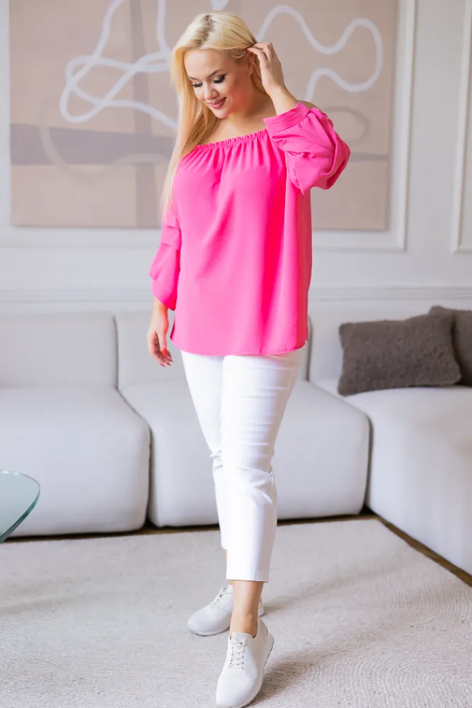 Damskie Włoski Różowa Bluzka z marszczonymi rękawami NANSI