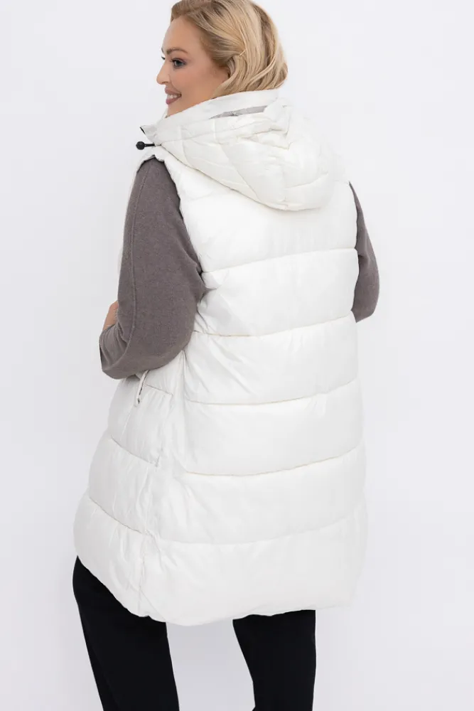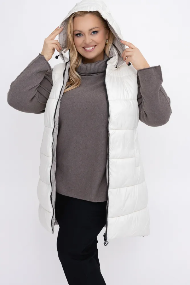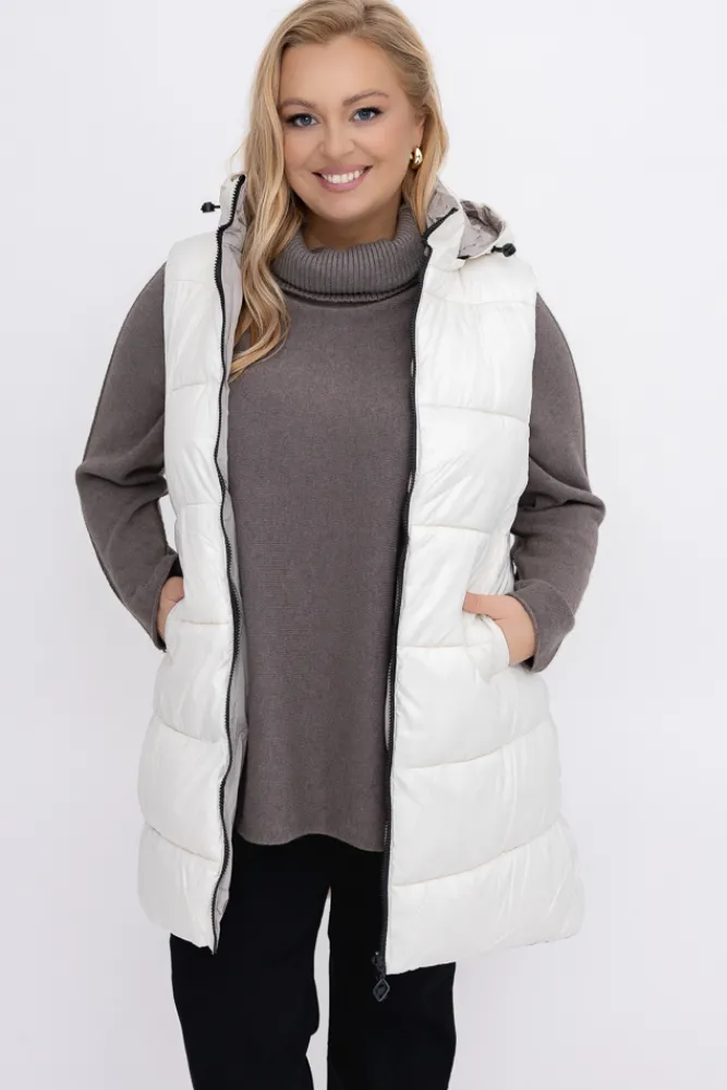 Damskie Włoski Śmietanowa Kamizelka puchowa z kapturem ROZELI