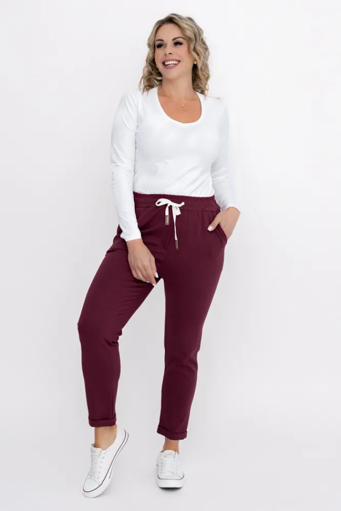 Damskie Włoski Wiśniowe Spodnie dresowe DAFNE