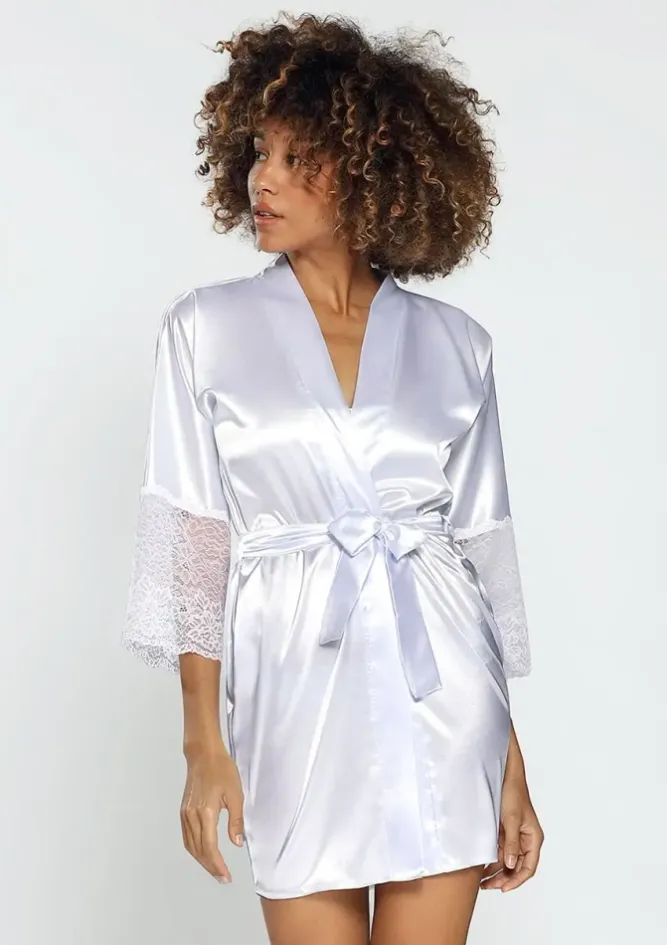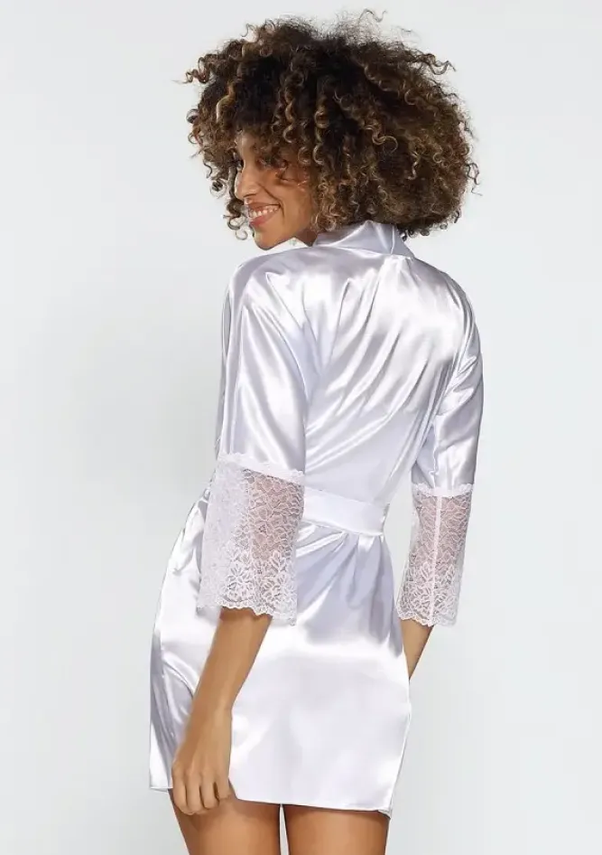Polski Biały Szlafrok satynowy CLARISSA