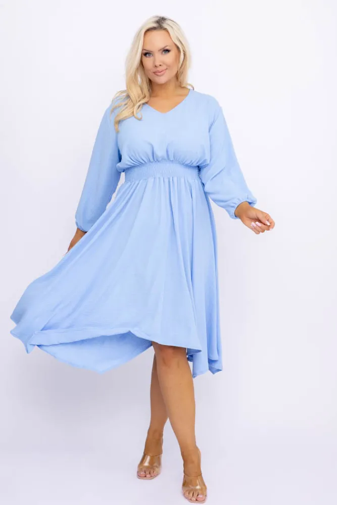 Polski Błękitna Sukienka z marszczeniem MILIO