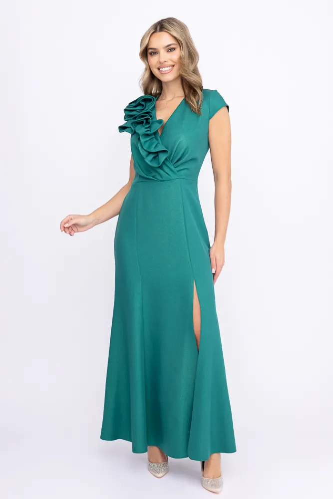 Polski Butelkowozielona Sukienka błyszcząca ARIEL
