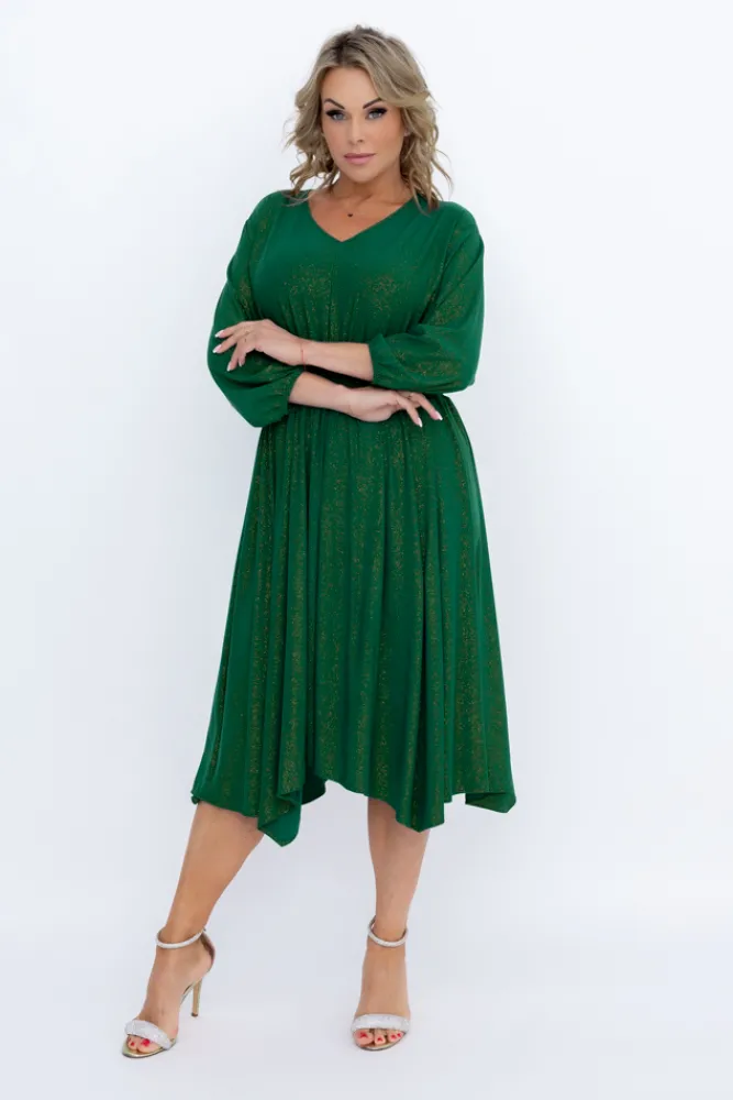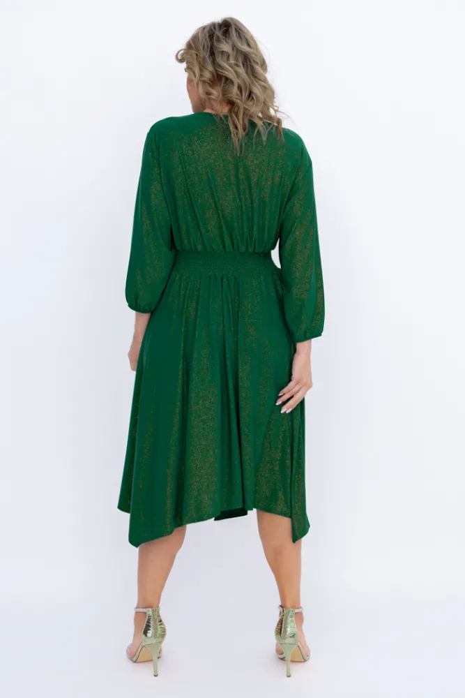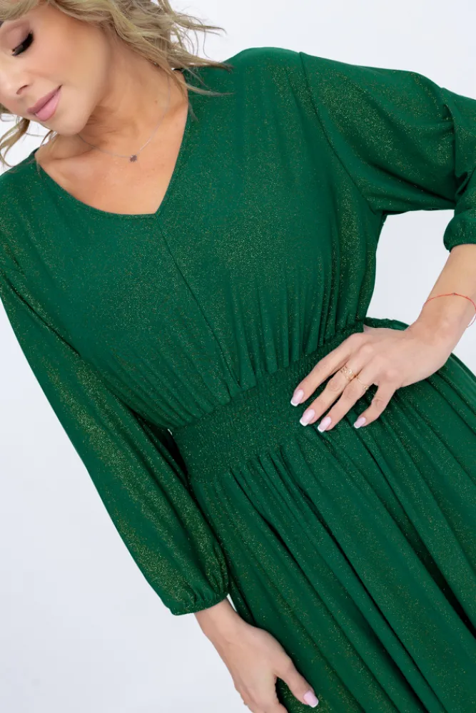 Polski Butelkowozielona Sukienka brokatowa z marszczeniem BAGOZIA