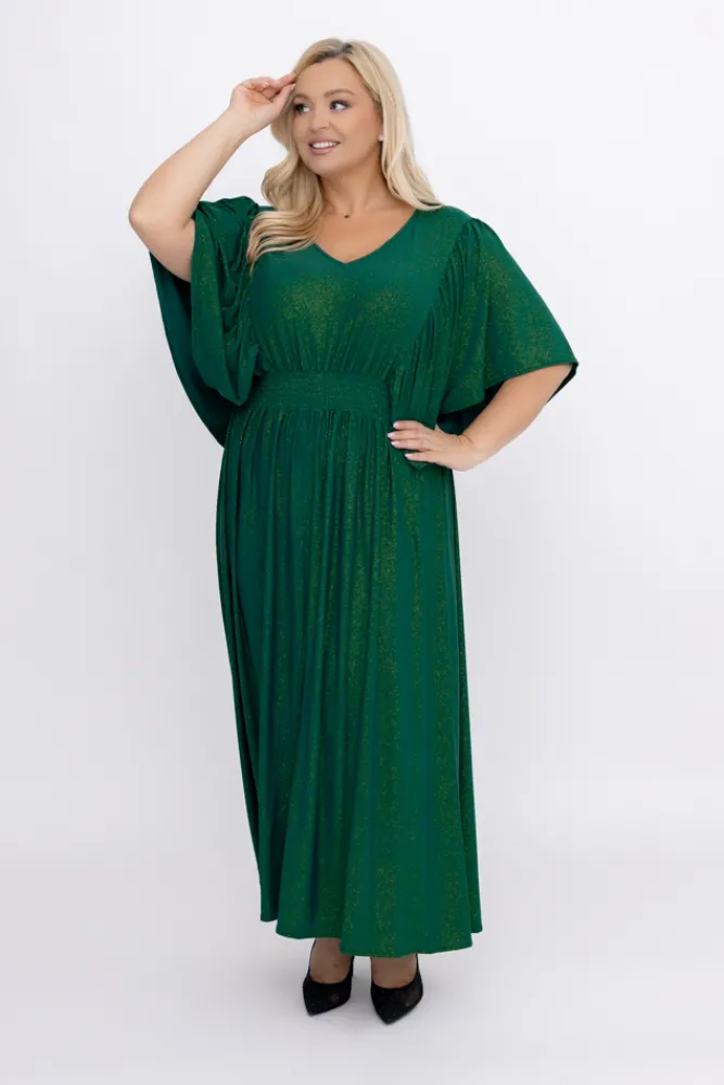 Polski Butelkowozielona Sukienka brokatowa z marszczeniem SILVINO