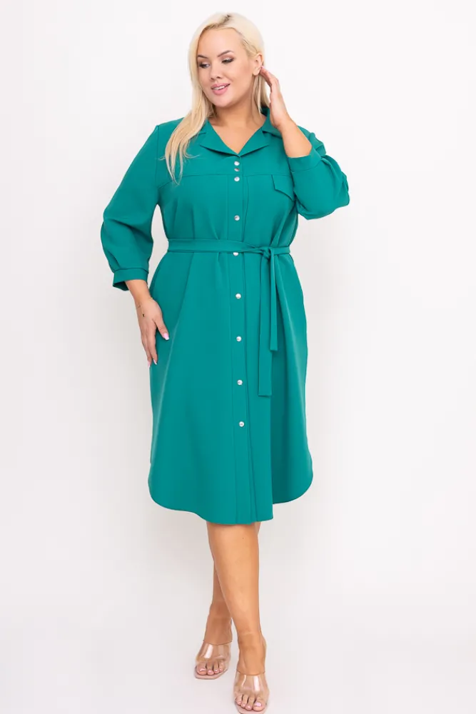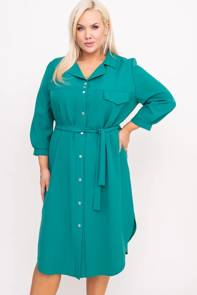 Polski Butelkowozielona Sukienka szmizjerka ASENSIA
