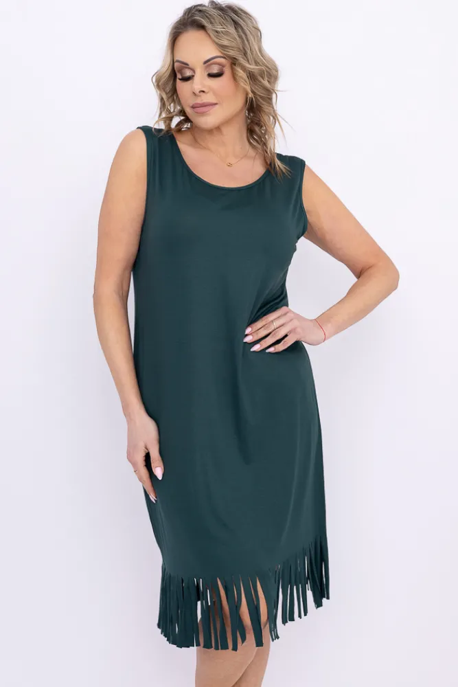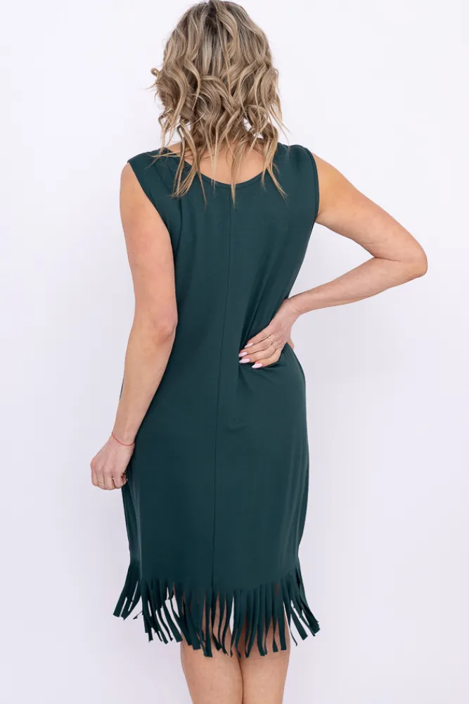 Polski Butelkowozielona Sukienka z frędzlami RIVIO