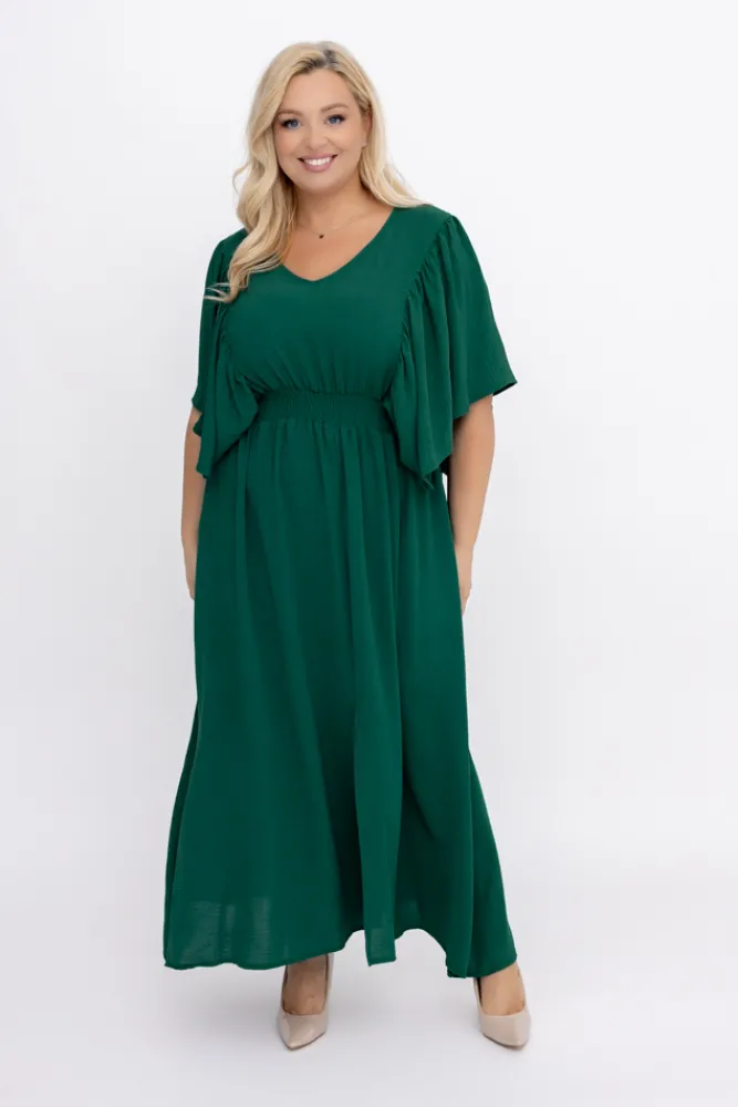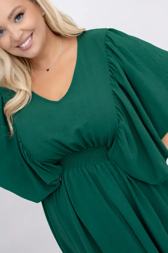 Polski Butelkowozielona Sukienka z marszczeniem VELUZINO