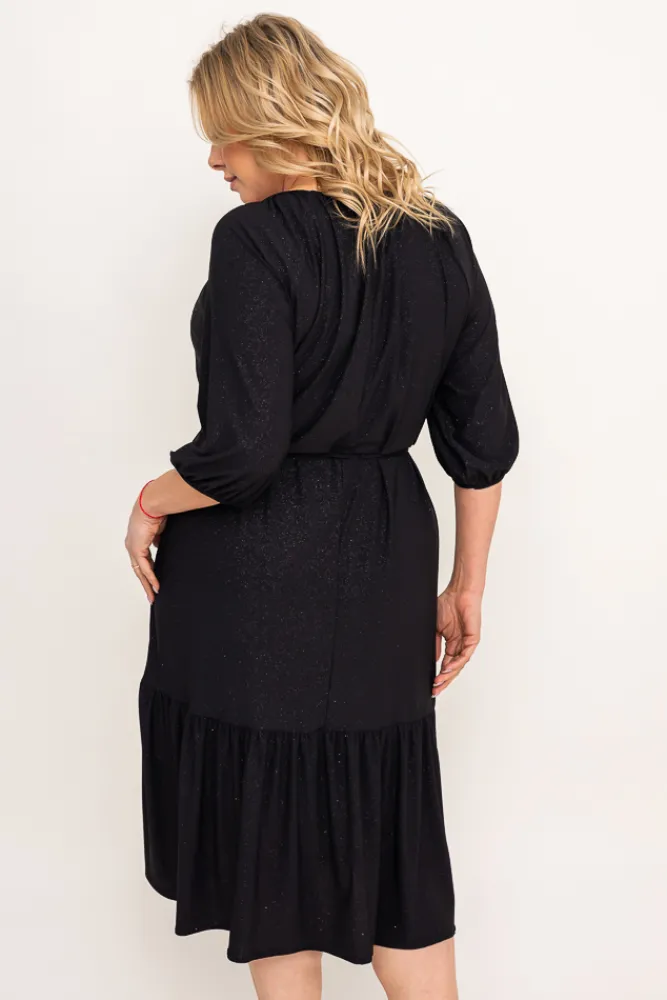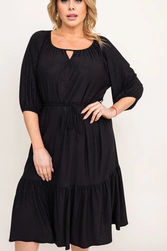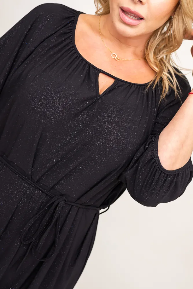 Polski Czarna Sukienka brokatowa z paskiem PENTUZI