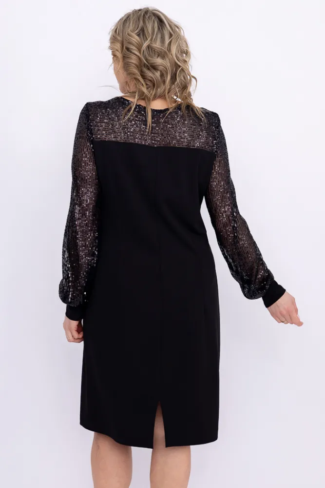 Polski Czarna Sukienka z cekinowymi rękawami EMANUEL