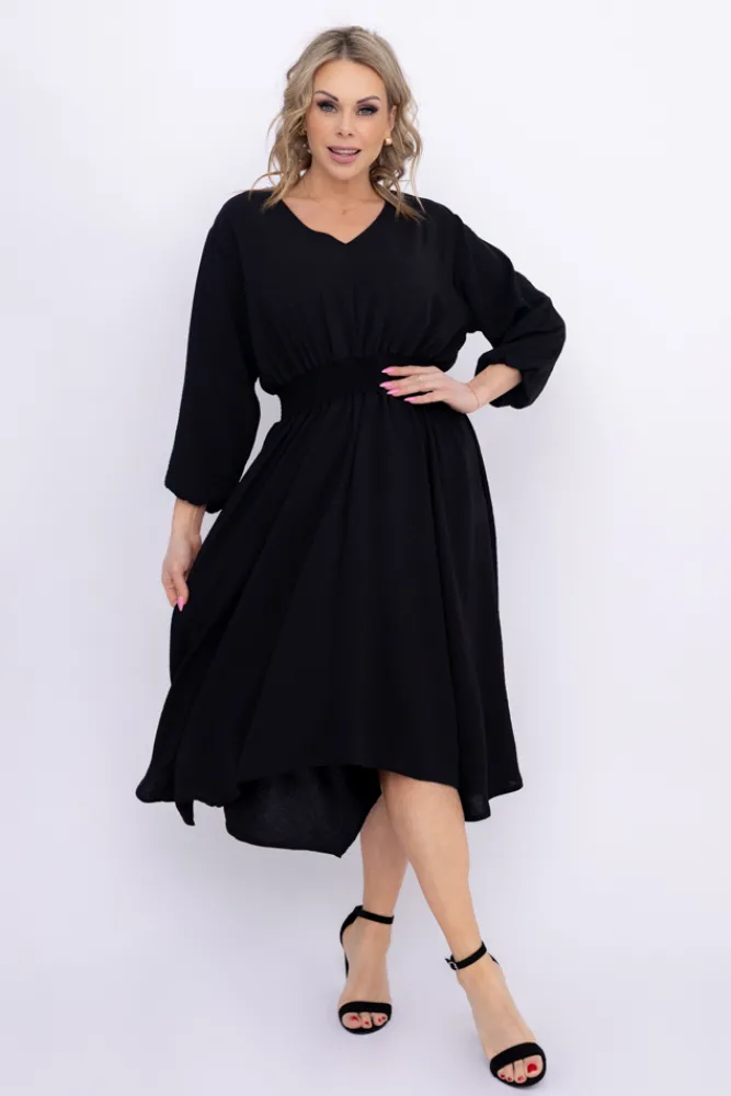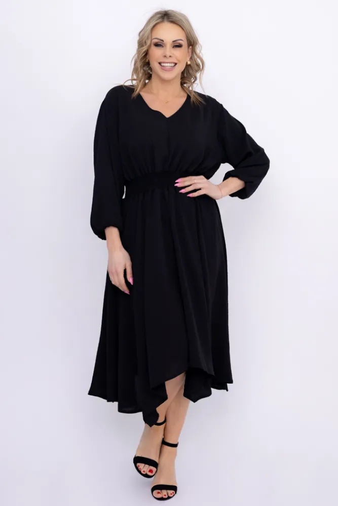 Polski Czarna Sukienka z marszczeniem MILIO