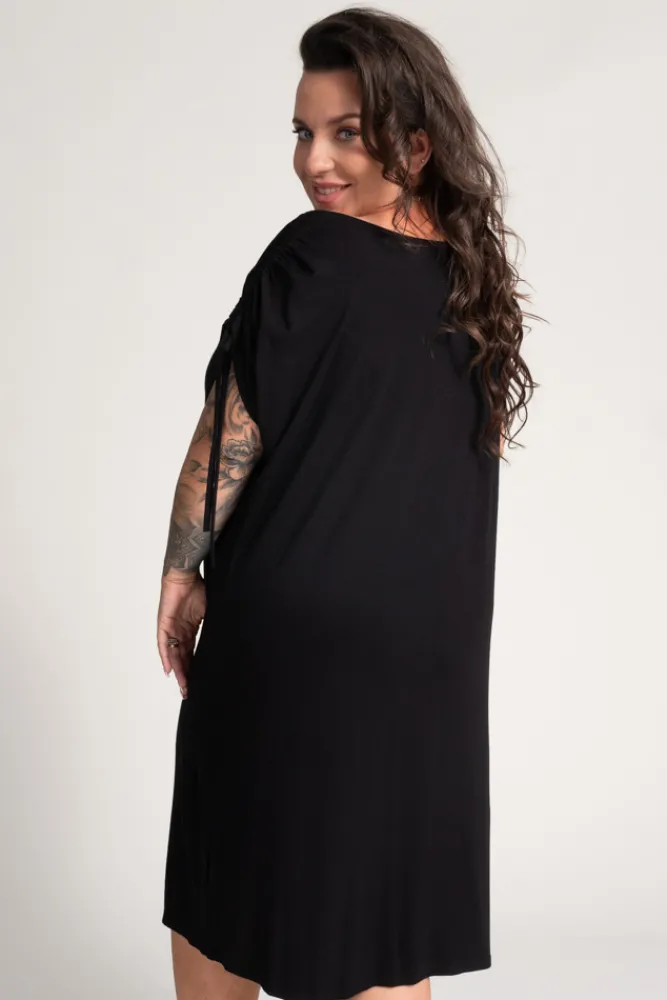 Polski Czarna Sukienka z marszczonymi rękawami PIRESA