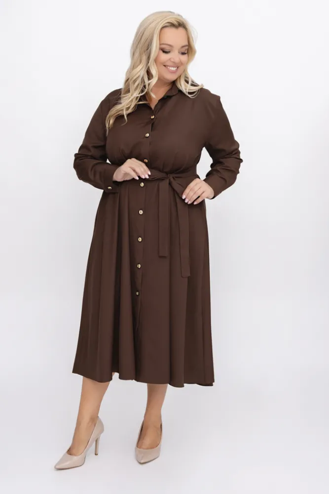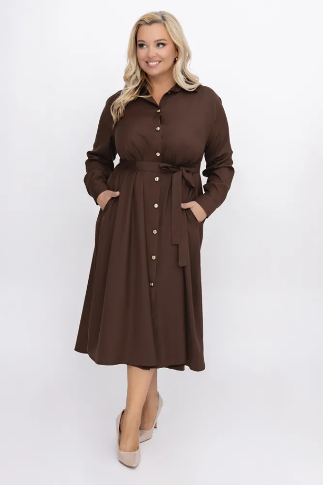 Polski Czekoladowa Sukienka szmizjerka TREMENO