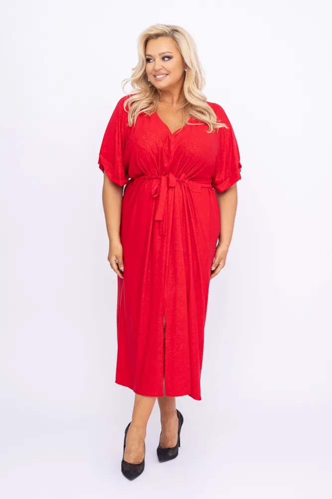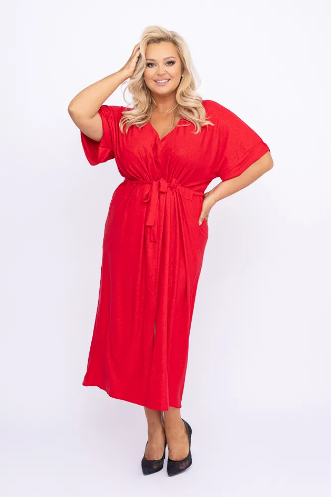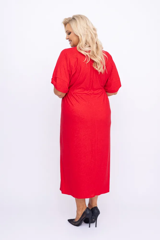 Polski Czerwona Sukienka brokatowa brokatowa MONSORI