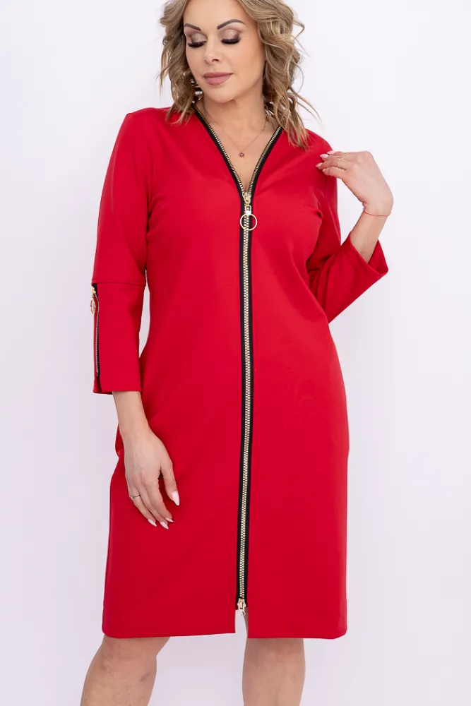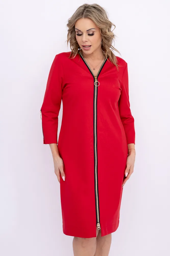 Polski Czerwona Sukienka z suwakiem SALMARIS