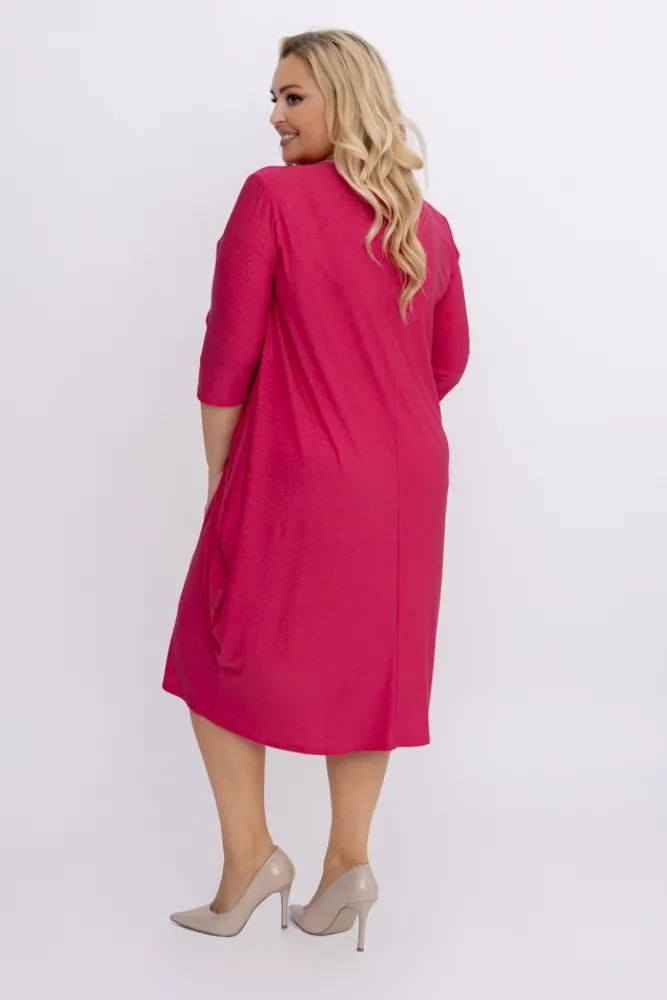Polski Fuksjowa Sukienka brokatowa REVIN
