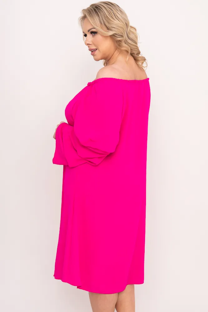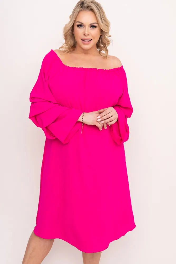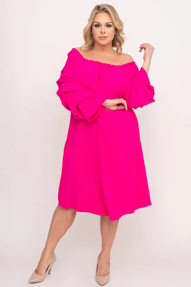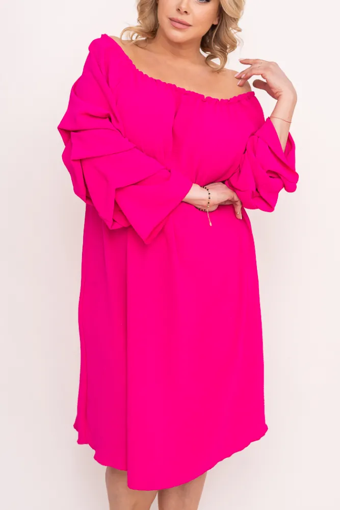 Polski Fuksjowa Sukienka z marszczonymi rękawami ALBEGA