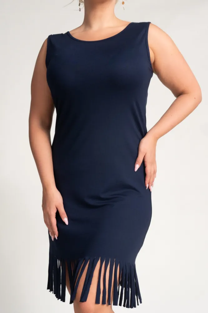 Polski Granatowa Sukienka z frędzlami RIVIO