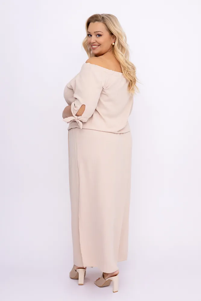 Polski Jasnobeżowa Sukienka NOBI