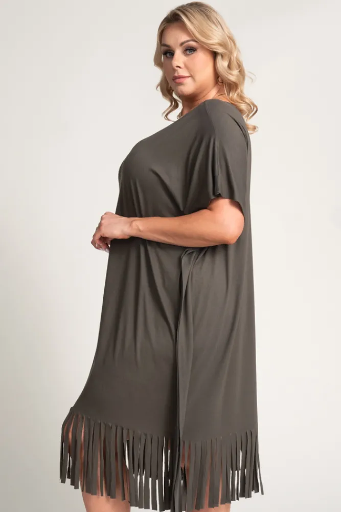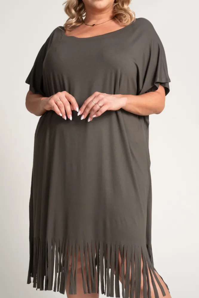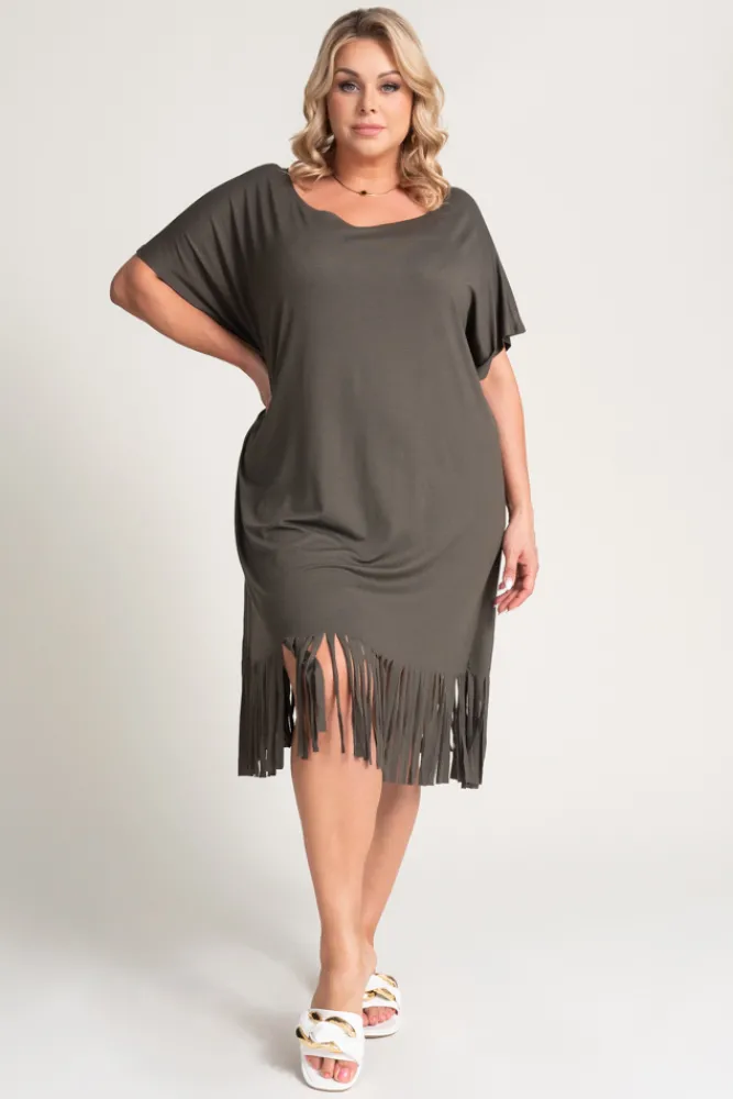 Polski Khaki Sukienka z frędzlami RIVINO