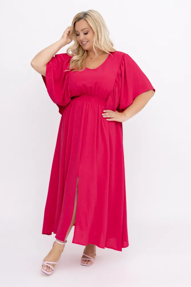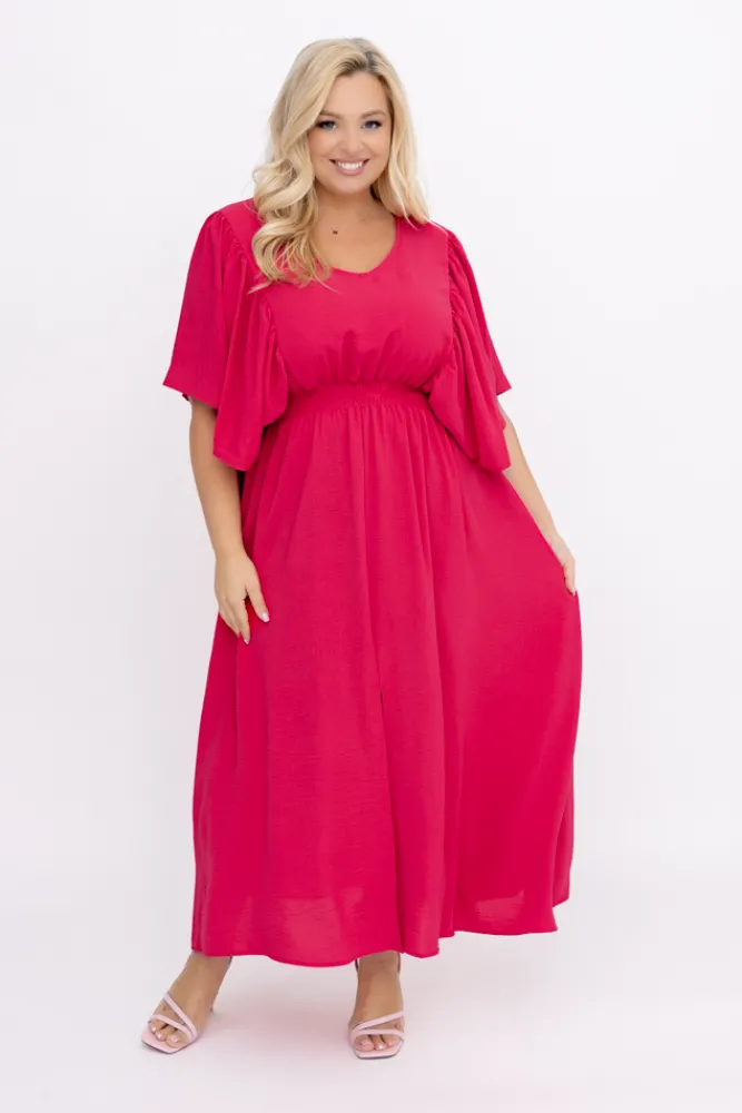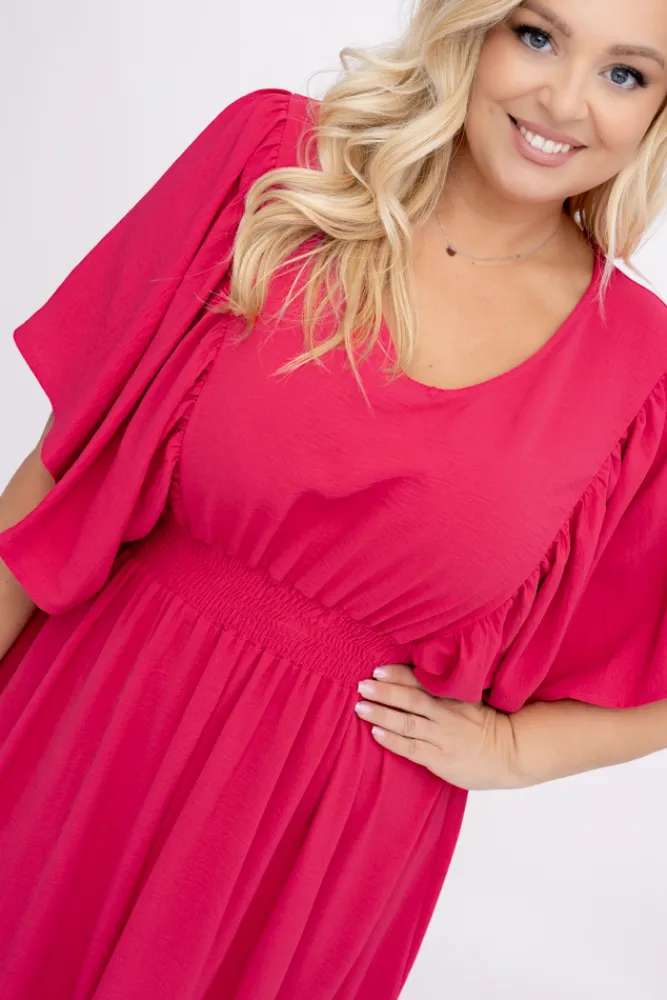 Polski Malinowa Sukienka z marszczeniem VELUZINO