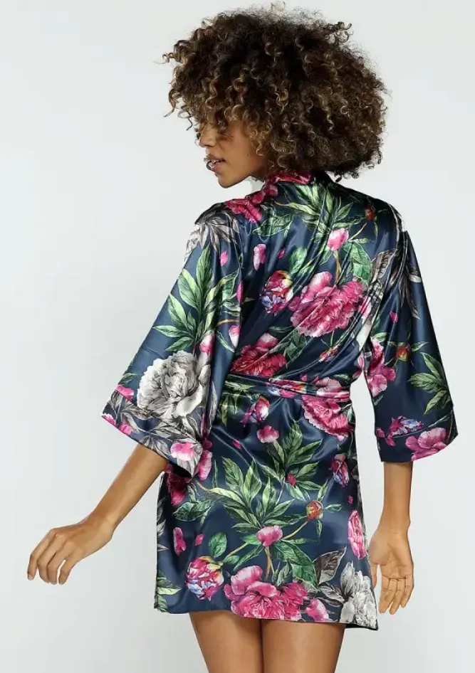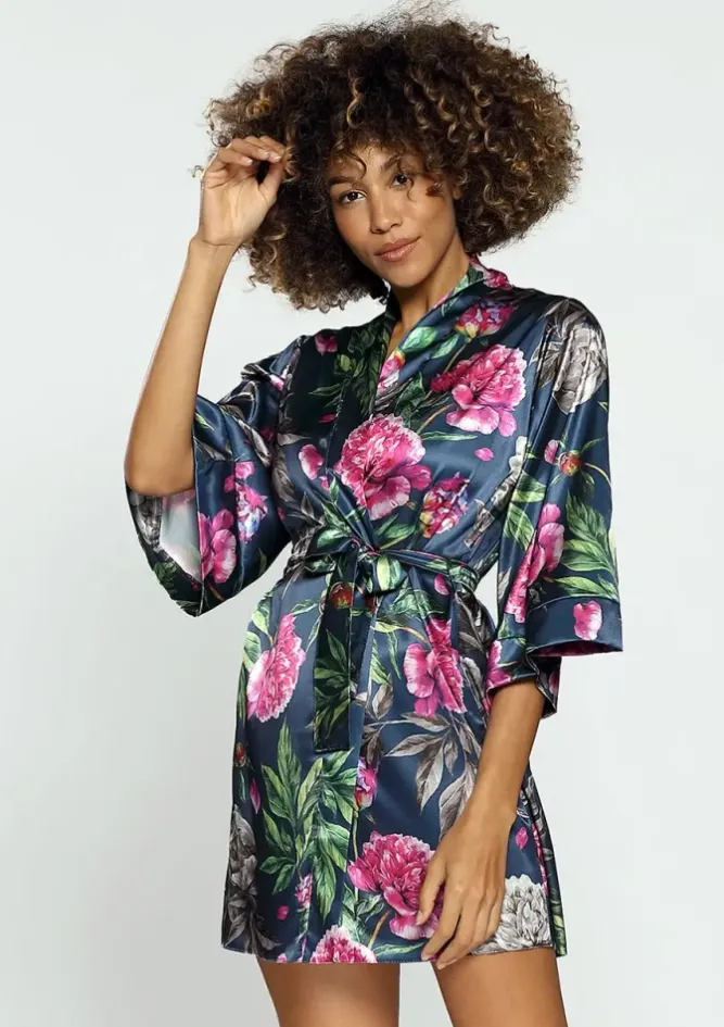 Polski Szlafrok satynowy FLOWERS DK-P 001