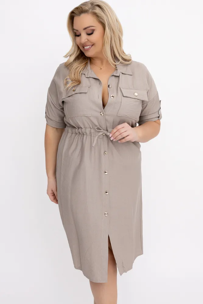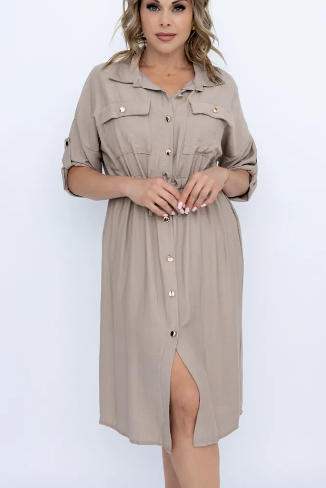 Włoski Beżowa Sukienka szmizjerka SAFERI