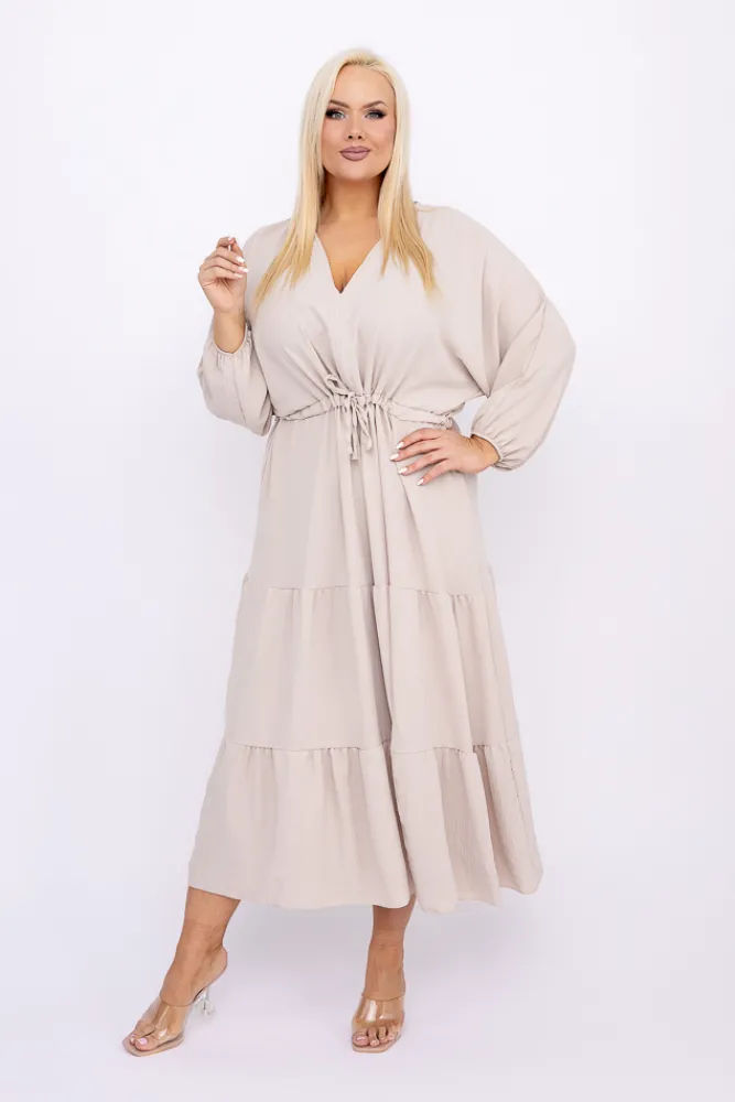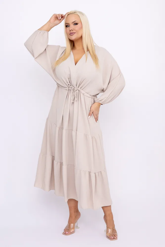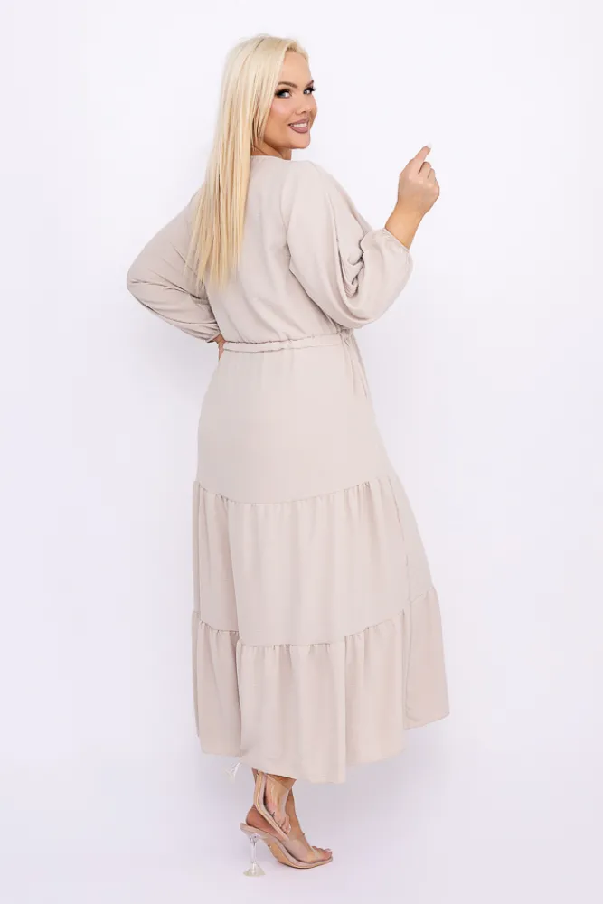 Włoski Beżowa Sukienka z rozcięciem TERUMI
