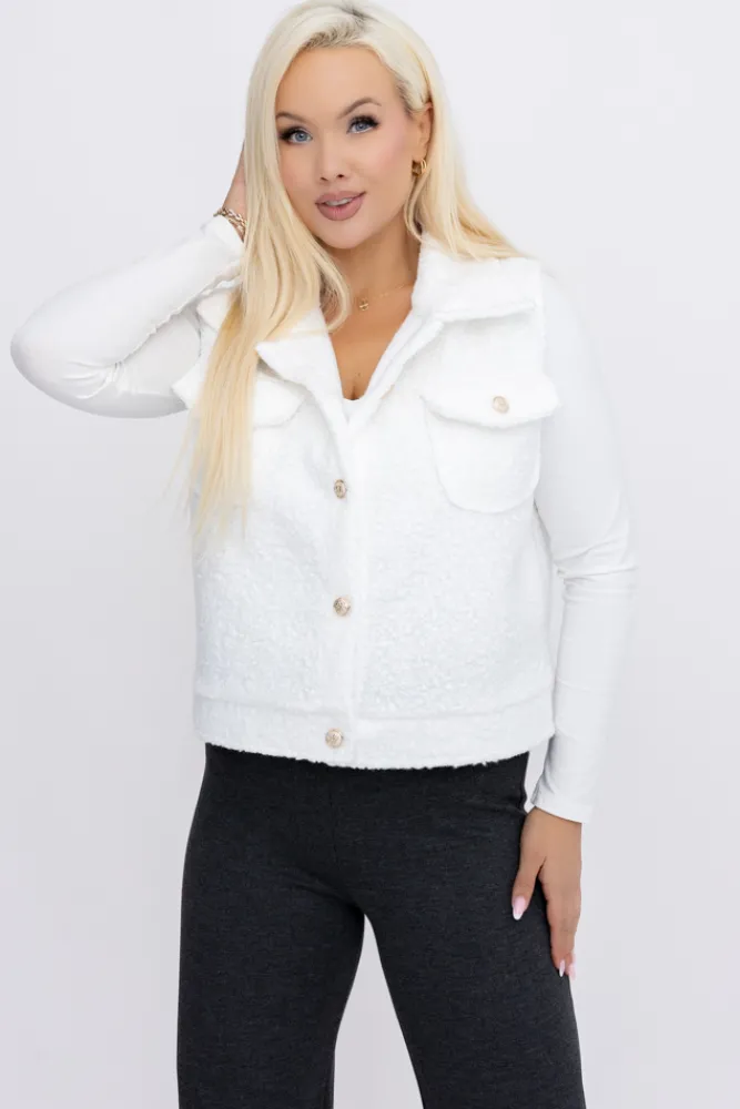 Włoski Biała Kamizelka pluszowa LOKREZI
